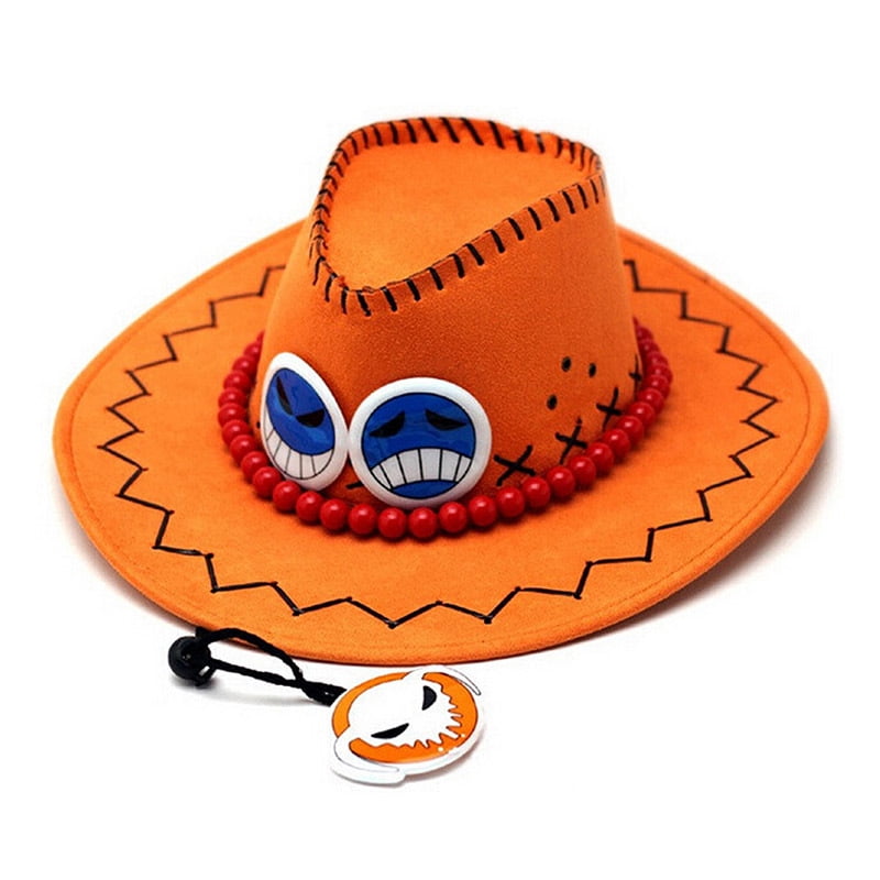 One Piece Fire Fist Ace Cospaly Hat One Piece Portgas D Ace Cowboy Cosplay Hat With Necklace Orange Walmart Com